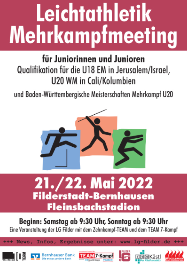 Eingebettet in des Meeting sind auch die Baden-Württembergischen Mehrkampfmeisterschaften der Jugend U20. Mit 19 gemeldeten Zehnkämpfern und 8 Siebenkämpferinnen ist man zahlenmäßig noch wieder auf Vor-Corona-Niveau angekommen; die zu erwartenden Punktzahlen werden sich jedoch auf hohem Niveau bewegen.
