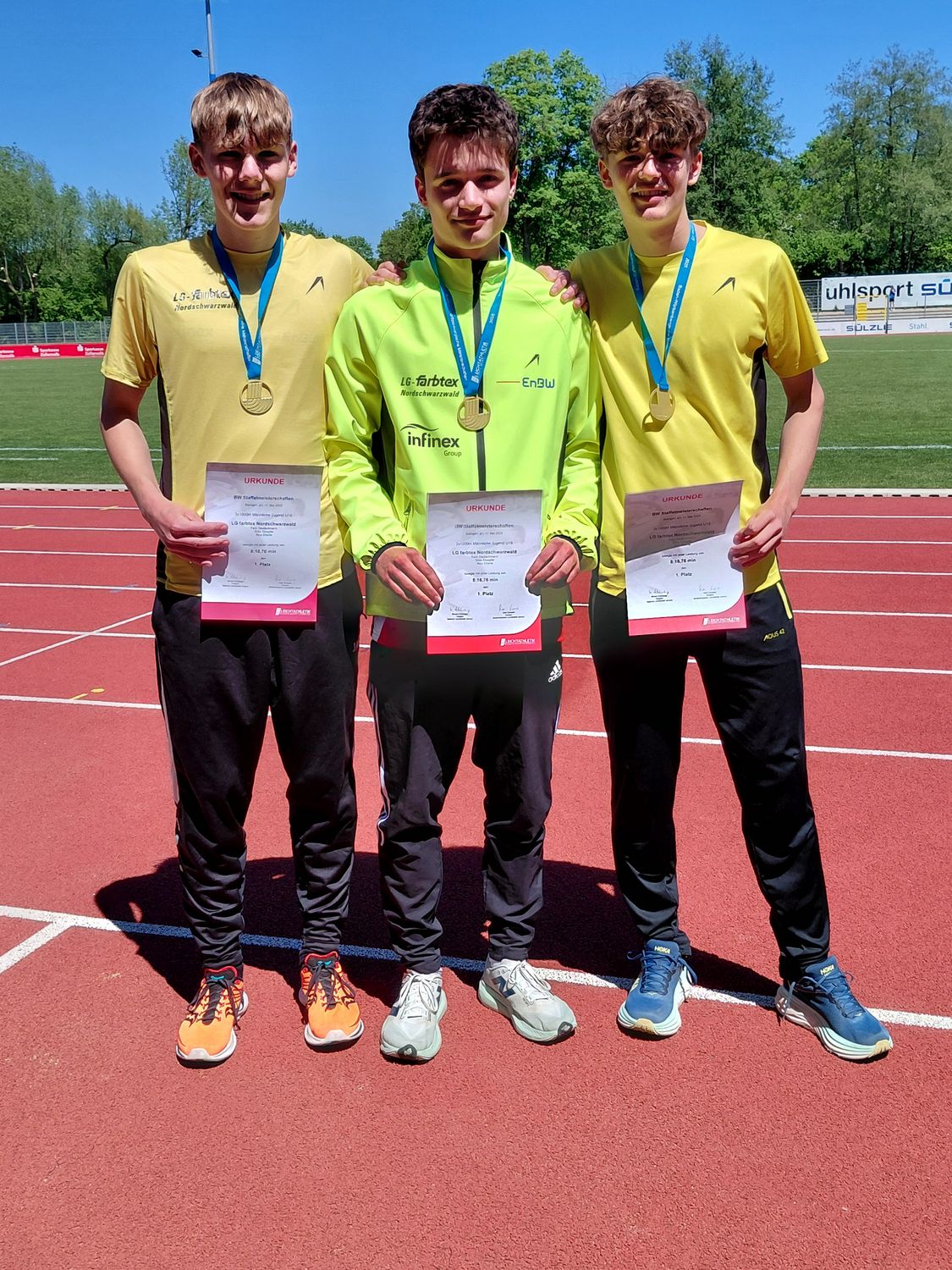 Im Rennen der Altersklasse U16 lief Felix Deutschmann an erster Position zusammen mit seinen LG Athleten Silas Klöpfer und Nico Eberle. Eine starke Gesamtleistung aller drei erbrachte den Baden-Württembergischen Meistertitel in einer tollen Zeit von 8:18,76 Minuten.