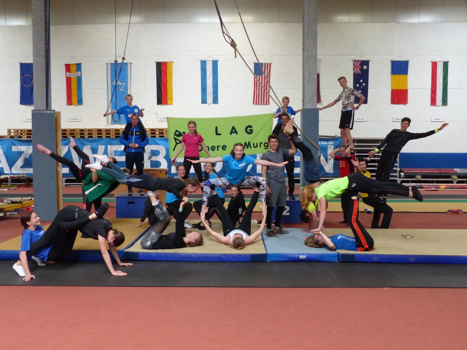 Die optimalen Trainingsbedingungen beim LAZ Zweibrücken in Rheinland-Pfalz durften die Athleten und Trainer von der LAG Obere Murg in den Osterferien genießen. In der Trainingshalle von Stabhochsprungweltmeister Raphael Holzdeppe und Speerwurfeuropameisterin Christin Hussong zu trainieren, brachte einen besonderen Motivationsschub. Auf ihrem Foto demonstrieren die Trainer und Athleten ihren Teamgeist sowie ihre akrobatischen Fähigkeiten, mit 767 Likes landeten sie auf dem dritten Rang.