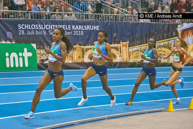 Mehr als 130 Athleten aus 46 Nationen gingen bei der 34. Auflage des INDOOR MEETINGs Karlsruhe an den Start. Was die Athleten beim Auftakt der IAAF World Indoor Tour auf die Bahn legten, war dann aller Ehren wert. Highlights des Abends waren sicherlich der 1.500 Meter-‐Lauf, bei der die Äthiopierin Genzebe Dibaba mit ihrer Zeit von 3:57,45 Minuten nur zwei Sekunden an ihrem Weltrekord, den sie 2014 in Karlsruhe aufgestellt hat, vorbeischrammte. Doch auch Deutschlands Laufwunder Konstanze Klosterhalfen begeisterte das Karlsruher Publikum. Ihre Aufholjagd in der Schlussrunde bescherte ihr Rang zwei in einer starken Zeit von 4:04,00 Minuten, was zugleich ihre persönliche Bestleistung bedeutete. Den seit 33 Jahren bestehenden deutschen Hallenrekord verfehlte die 20-‐jährige Klosterhalfen um nur 36 Hundertstelsekunden.