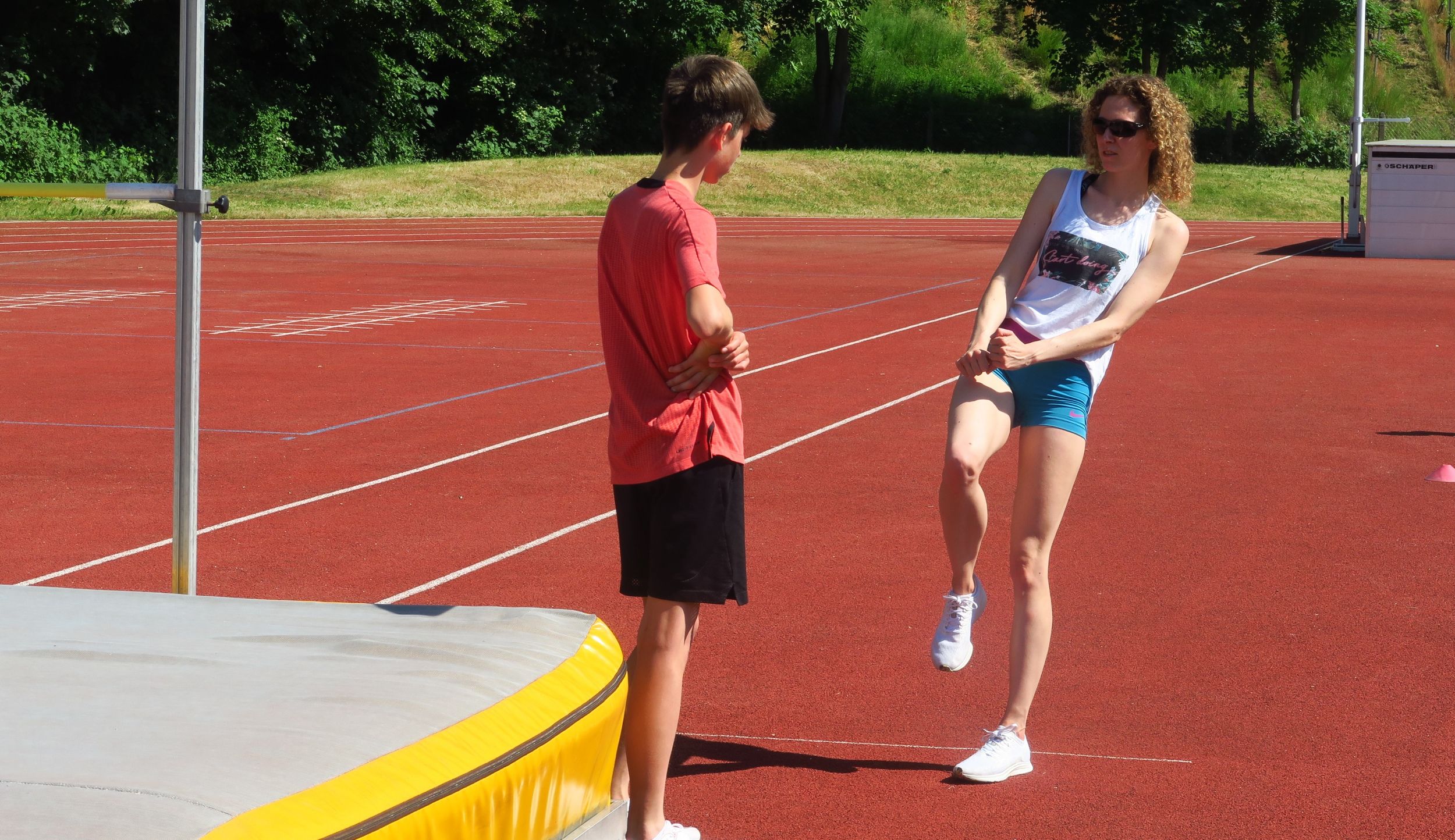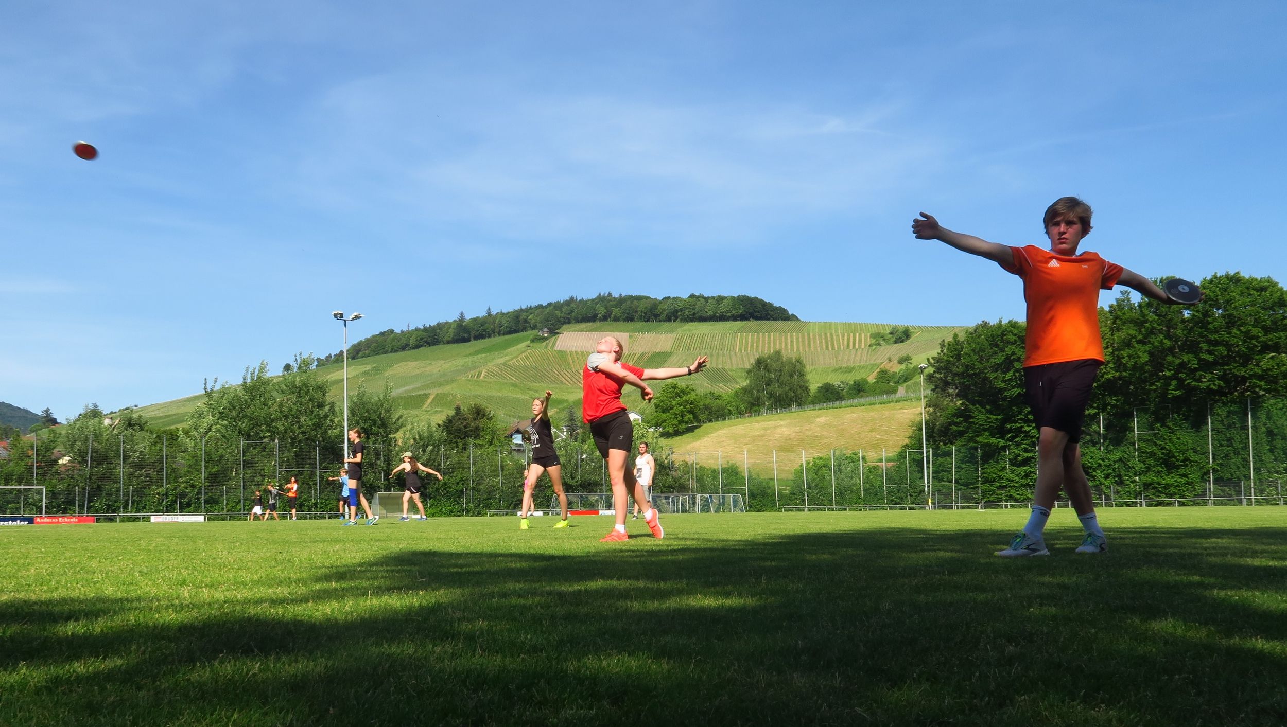 Auch in der zweiten Wochenhälfte wurde konzentriert an den Fertigkeiten gearbeitet. Bei den Mehrkämpfern mit Regina und Christoph Geissler und Tom Kunze standen Hürden, Hoch- und Stabhochsprung sowie Diskus im Mittelpunkt. Die Werfer kümmerten sich mit Carolin Streipart, Rebecca Weiser und Luca Heim neben ihren Wurfdisziplinen um die ergänzenden Disziplinen für den Blockwettkampf. Abgerundet wurde das Ganze mit Spielen, die oft nicht weniger anstrengend waren als das Training, ein bisschen Theorie zur Ernährung und Regeneration sowie dem allseits beliebten frühmorgendlichen Bach-Spaziergang mit anschließender Fußgymnastik ;-)